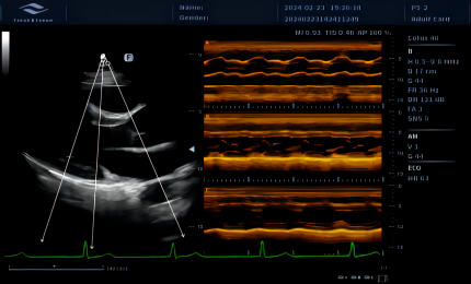 Technologia krzywoliniowego M-Mode (CAM) umożliwia wyświetlanie wszystkich przestrzennych i czasowych relacji ruchów segmentów mięśnia sercowego podczas cyklu sercowego w sektorze skanowania. Zapewnia to nową metodę pomiaru do ilościowej analizy zaburzeń ruchów segmentów mięśnia sercowego podczas fazy skurczowej lub rozkurczowej.