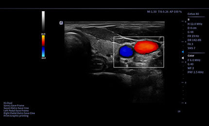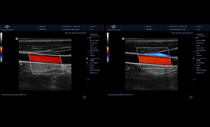 Urządzenie umożliwia pomiar obszaru naczynia krwionośnego, automatyczne określenie prędkości przepływu krwi w oparciu o analizę widmową oraz prezentację wyników objętości przepływu.